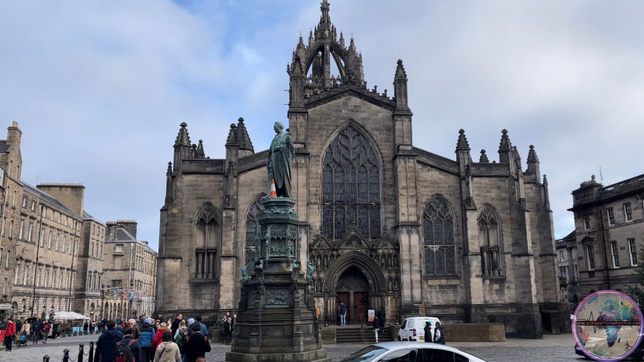 Entramos en St Giles Cathedral, edificio religioso histórico, construido a partir del siglo XII, emblemático de la ciudad de Edimburgo. Su elemento más característico es su cúpula en forma de corona real.
