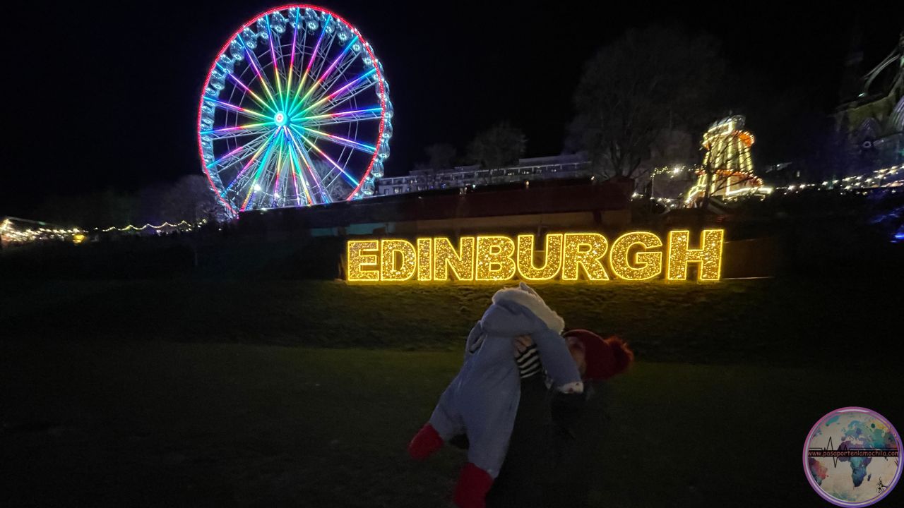 Y aparecemos en el Princess Street Garden. En esta época del año con el Mercado de Navidad recién inaugurado y la colorida iluminación en los jardines, hacen una perfecta estampa Navideña. Aprovechamos para recorrerlo todo y hacernos MIL fotos.