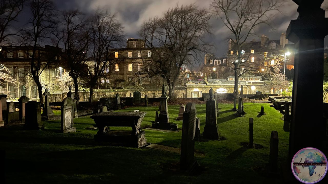 Después de dos horas de tour nos despedimos del día de hoy y tomamos rumbo al alojamiento que justamente el tour termina en el cementerio de Canongate, cerca de nuestro dormitorio. Nota: allí verás las tumbas enjauladas.
