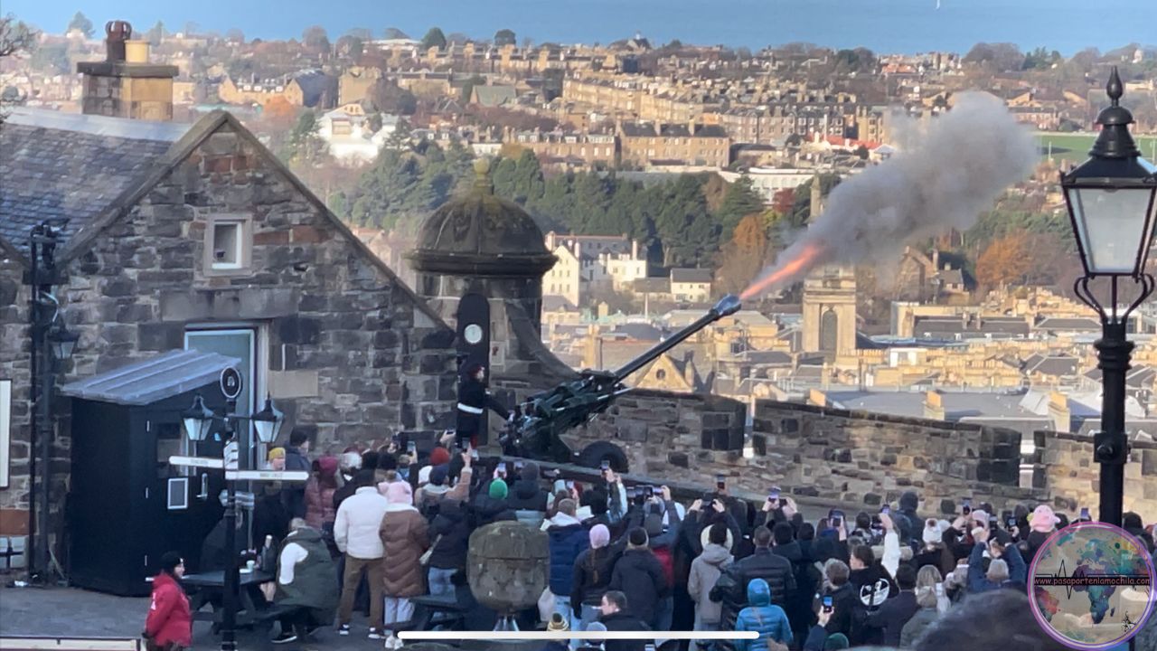 En su día los barcos que atracaban en el puerto de Leith , Edimburgo ponían sus relojes en hora basados en el cañonazo de la una lanzado desde el Castillo. No os preocupéis que el cañonazo es sin carga 😉 Buen sitio para verlo, en el patio del Castillo o dónde estuvimos Keyla y yo, en la parte más alta, Mon’s Meg.